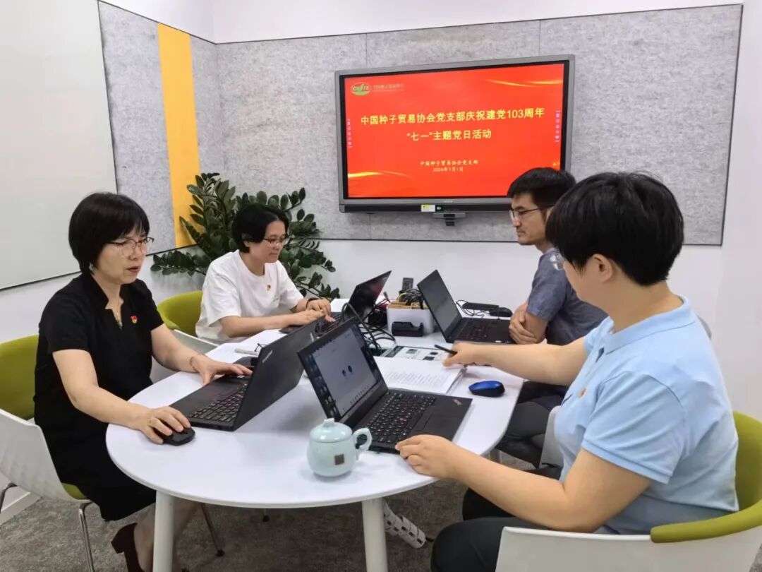 2024年7月1日,中国种子贸易协会党支部开展“七一”主题党日活动,通过党支部书记讲专题党课、重温入党誓词和诗词朗诵的形式,庆祝中国共产党成立103周年。协会党员和职工参加了此次活动。