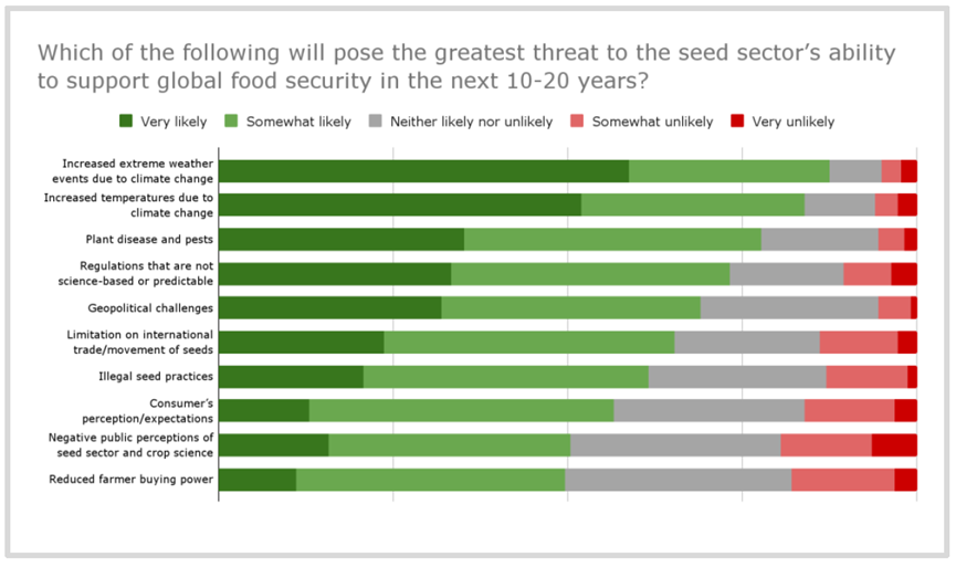 1、近45%的受访者将气候变化列为种子行业所面临的最大挑战。