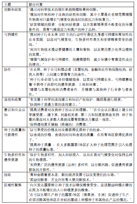 当被问及对未来100年种子行业的行动呼吁时,受访者的回答主要围绕九个主题: