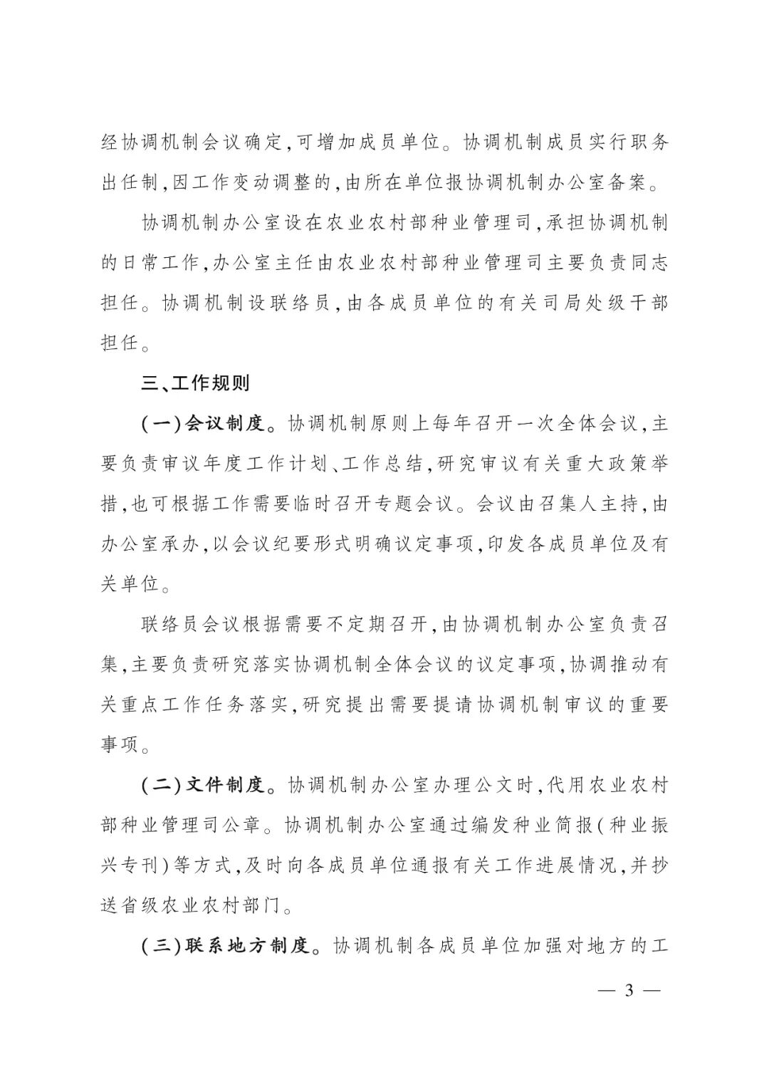 协调机制主要职能包括贯彻落实党中央、国务院关于推进种业振兴的重⼤决策部署;统筹协调全国种业发展⼯作, 研究审议拟出台实施的有关政策、重⼤⼯程专项和重点⼯作安排; 加强发展战略谋划和⼯作督促指导,认真梳理和解决重⼤突出共性问题, 破除种业发展中的障碍, 形成推进种业振兴合力。