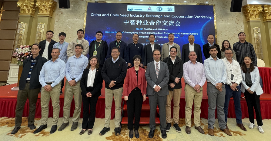 在研学考察期间,种贸协、智利种子协会与广州种子商会共同举办了“中智种业合作交流会”。会上,中智两国就两国种业政策法规、种子贸易情况以及制种生产经验展开交流,并开展了卓有成效的一对一企业对接洽谈,促进中智种业合作取得实质性进展。