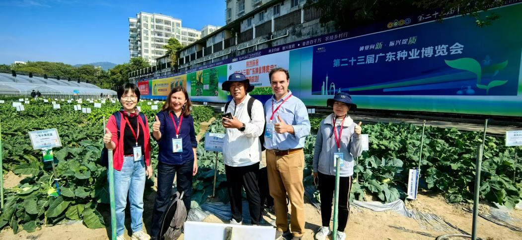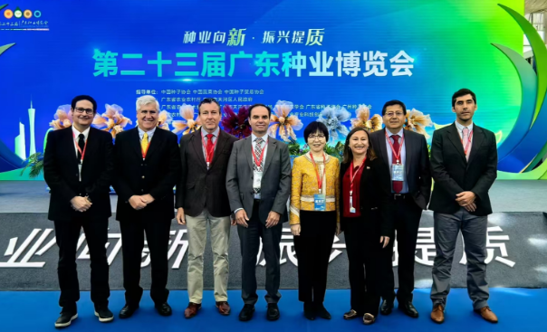 研学考察期间,代表团还参加了第23届广东种业博览会。本届广东种业大会以“国强种芯,世界共享”为主题,秉承“政府搭台、企业参与、科技支撑、服务农民”的办会原则,从全产业链角度出发,设置“开幕活动、主论坛、展览展示、专题论坛、推介洽谈、应用场景”六大活动。智利代表团参观了本届大会田间展示基地、农机装备和数字技术展区,对现场如此大规模的田间品种展示和多样性高品质的蔬菜品种展示表示赞叹不已,并重点观看了小型农业机械展区。