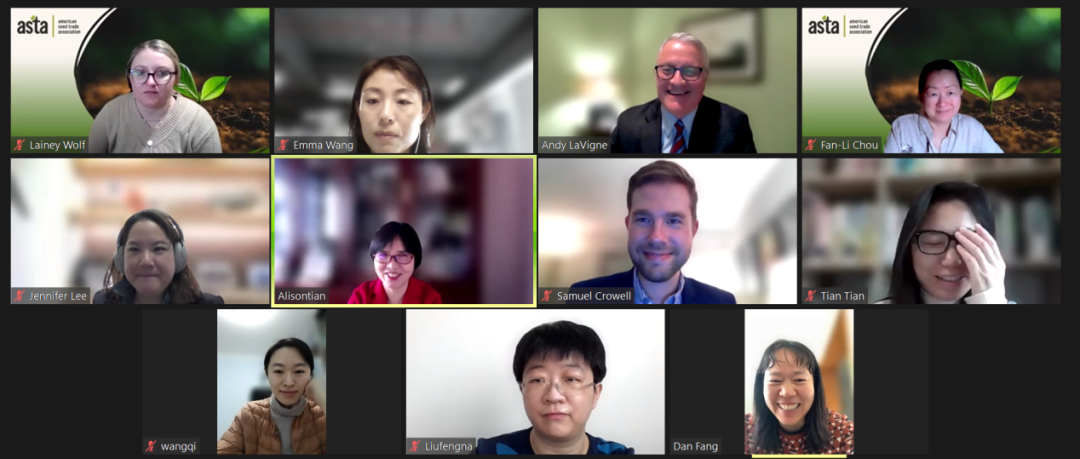 出席本次线上工作会议的还有美国种子贸易协会国际项目与政策高级总监Samuel Crowell,美国种子贸易协会国际项目经理Lainey Wolf女士,中美农业与食品合作协会秘书长Jennifer Lee女士,中美农业与食品合作协会种业与ASTA项目负责人但芳女士以及我协会国际合作交流部,政策研究部和会议会展部的负责人。