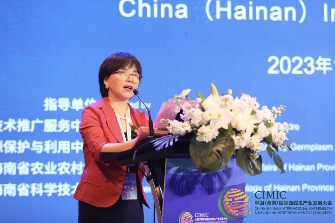 三亚市人民政府副秘书长张磊代表三亚市政府对全体参会嘉宾表示热烈欢迎。她表示,大会围绕西甜瓜全产业链展开研讨,有助于三亚引进同纬度国家优良种质资源,培育热带优质品种,完善全产业链建设,推动我国西甜瓜产业高质量发展。
