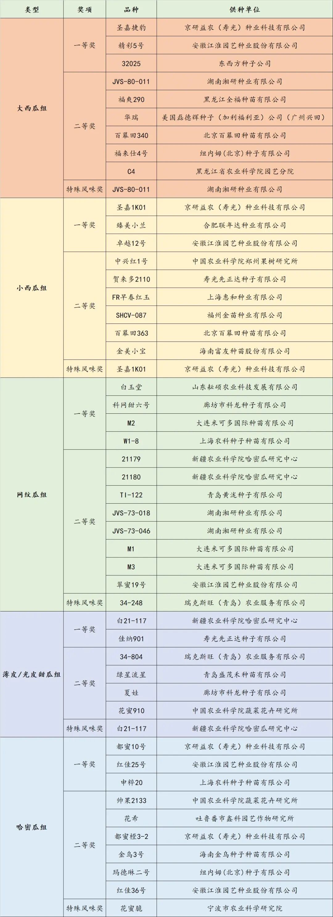 首届中国(海南)国际西甜瓜产业发展大会品种测评与评优获奖名单