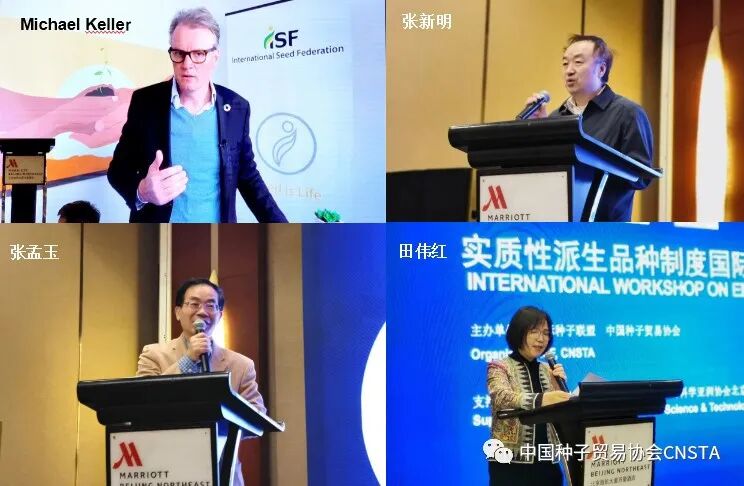 研讨会开幕式上,国际种子联盟秘书长Michael Keller先生、农业部科技发展中心植物新品种保护处处长张新明先生、作物科学亚洲协会种业委员会主席张孟玉先生、中国种子贸易协会秘书长田伟红女士先后致辞。在欢迎致辞中,Michael Keller秘书长表示EDV制度是ISF长期重点关注的工作事项之一,他期待中国加快EDV体系的建立,更好地促进世界种业市场的发展;张新明处长简要地回顾了我国植物新品种保护近年来取得的进展,强调了EDV制度在双边、多边自贸区谈判中的重要性;张孟玉主席表达了对我国加快修订植物新品种保护条例的期待,希望与国内种业相关机构加强合作,共同推动实质性派生品种制度的建立;田伟红秘书长简要地回顾了种贸协在促进种业知识产权合作交流方面的努力,并对各方的参与、支持表示了感谢。随后,田伟红秘书长主持了本次会议。