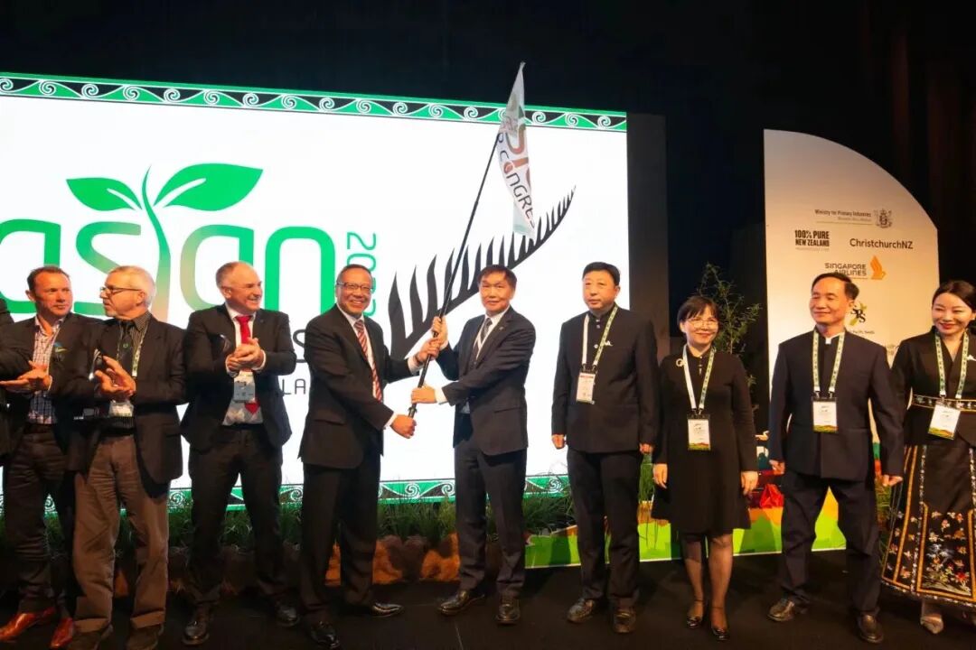 2023年11月20-24日,第28届亚洲种子大会在新西兰基督城隆重召开,来自全球各地1000多名代表共聚新西兰“花园之城”。当地时间11月23日晚,先正达集团中国总裁刘红生,代表主办方中国种子贸易协会从亚太种子协会和新西兰谷物和种子贸易协会手中接过大会会旗,移交给主办城市三亚市政府代表团团长、三亚市人大常委会主任刘耿。刘红生在致辞中首先对亚太种子协会和新西兰谷物和种子贸易协会今年亚洲种子大会的成功举办表示热烈祝贺,同时还提到中国组委会将与亚太种子协会保持密切合作,共同在三亚办好明年的种业界隆重盛会。值此之际,交接仪式圆满完成,全体组委会成员和中国参会代表们一起拍手欢呼,庆祝这一激动人心的时刻。这将是继2005年由中国种子贸易协会在上海成功举办亚洲种子大会后,时隔19年再次在中国内地举办亚洲种子大会,对于彰显中国种业振兴成就、推进中国“南繁硅谷”建设和海南自贸港建设都将起到积极作用。